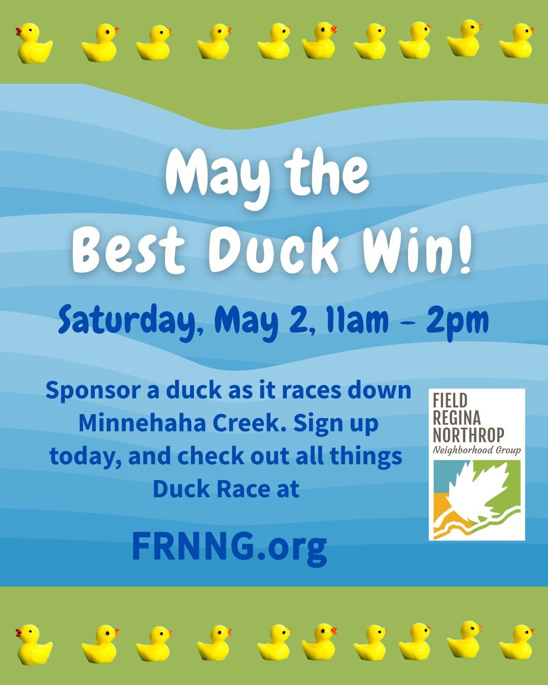 Gray Duck Level: $250. Table at the event and share business name/link/logo at www.frnng.org/duck-race.