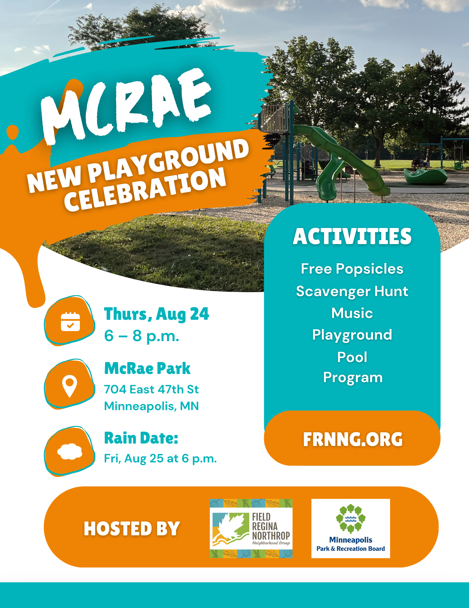 Huge thanks to everyone who came to celebrate McRae Parkβs new playground on Aug 24! We had a blast with neighbors, did tons of scavenger hunts and gave out over 225 popsicles! Huge thanks toβ¦